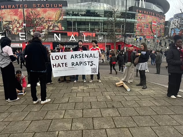 人性>足球,阿森納球迷在西漢姆賽前組織了抗議強奸犯活動 2月25日訊 《每日郵報》報道,在阿森納和西漢姆的比賽前,有阿森納球迷在球場外抗議強奸犯和性暴力。雖然鮑文的進球搶走了頭條,但開球前在球場外舉行的球迷抗議活動也引起了廣泛討論。阿森納球迷反性暴力組織在 2025/02/25