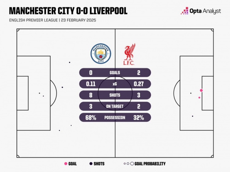 曼城0-2利物浦半場數(shù)據(jù):控球率68%-32%,射門8-3,射正3-2 2月24日訊 本輪英超比賽,曼城對陣?yán)锲?,半場利物?-0領(lǐng)先,兩隊(duì)半場數(shù)據(jù)(利物浦在后):射門:8-3射正:3-2預(yù)期進(jìn)球:0.18-0.34控球率:68%-32%傳球成功率:92%-83%角球: 2025/02/24