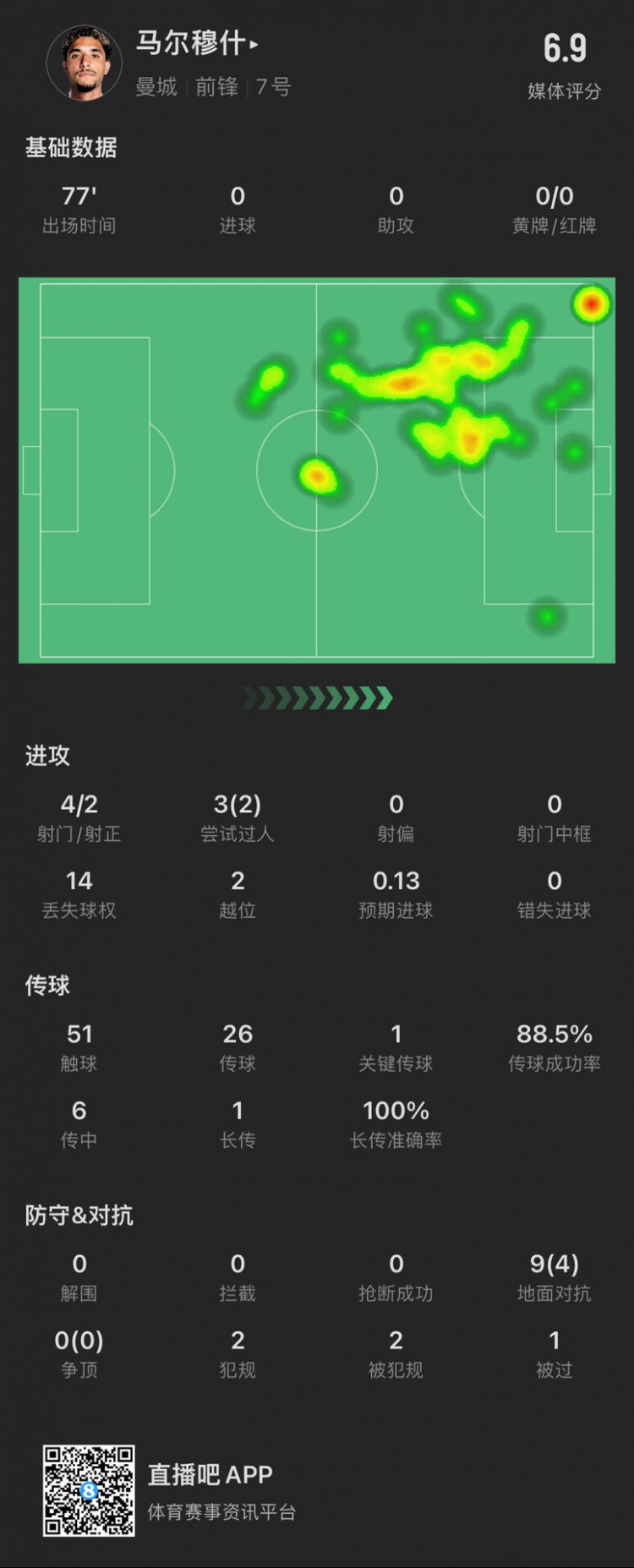馬爾穆什本場數(shù)據(jù):4次射門2次射正 2次越位 媒體評分6.9分 2月24日訊 英超聯(lián)賽第26輪,曼城主場對陣?yán)锲值谋荣愓谶M(jìn)行中,本場比賽曼城前鋒馬爾穆什首發(fā)登場,第77分鐘被換下,以下是他本場比賽的數(shù)據(jù)。馬爾穆什數(shù)據(jù):出場時間:77分鐘射門數(shù)據(jù):4次射門,2次 2025/02/24