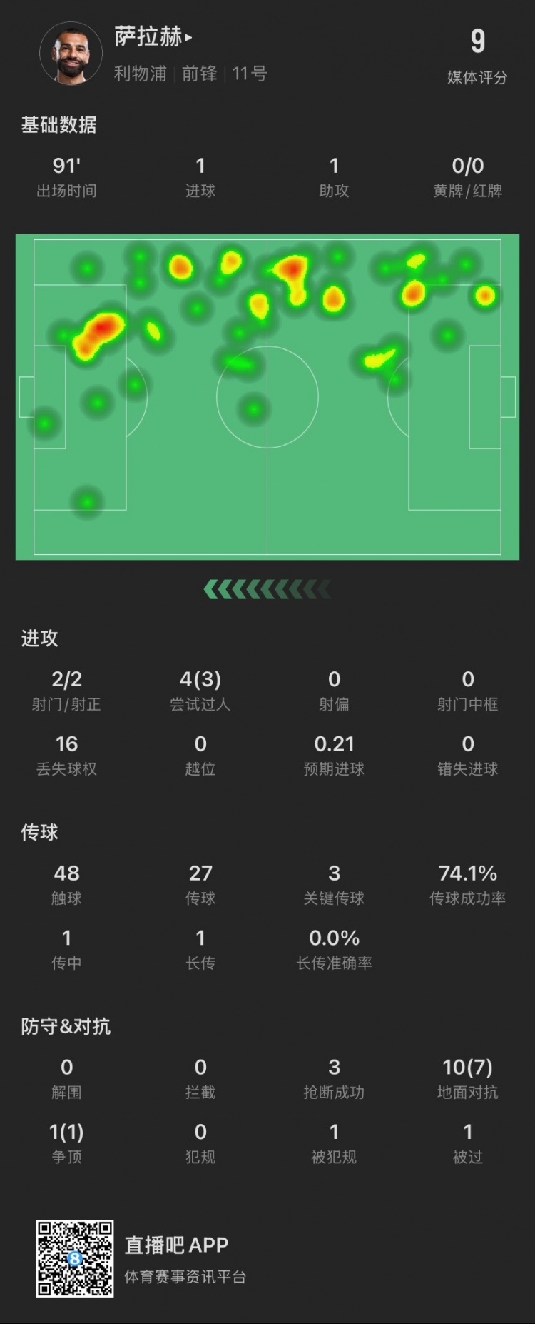 薩拉赫本場:傳射建功!4次過人成功3次,獲評9分全場最高 2月24日訊 在剛剛結(jié)束的英超本輪焦點(diǎn)戰(zhàn)中,利物浦2-0擊敗曼城。本場比賽,薩拉赫延續(xù)火熱狀態(tài),傳射建功,獲評9分全場最高。薩拉赫本場主要數(shù)據(jù)↓射門:2射正:2進(jìn)球:1過人:嘗試4次,成功3次觸球:4 2025/02/24