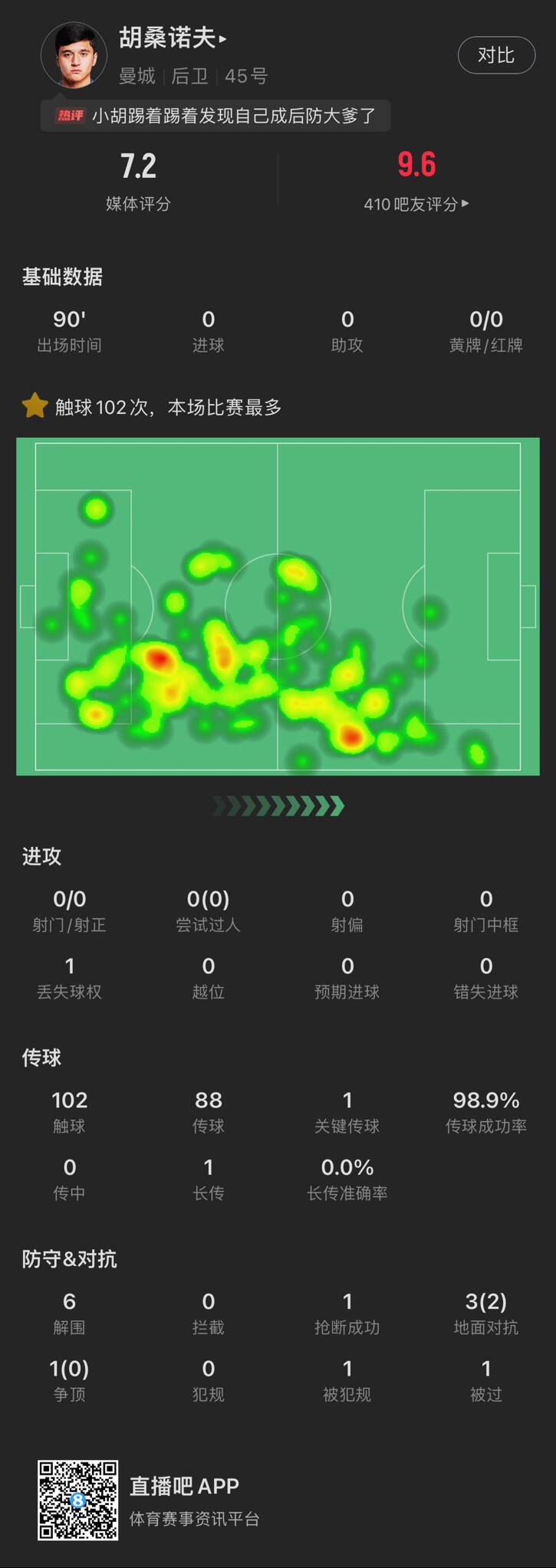 胡桑諾夫數(shù)據(jù):傳球成功率98.9% 6次解圍 媒體評分7.2分 2月24日訊 英超聯(lián)賽第26輪,曼城主場0-2不敵利物浦,本場比賽曼城后衛(wèi)胡桑諾夫首發(fā)登場,以下是他本場比賽的數(shù)據(jù)。胡桑諾夫數(shù)據(jù):出場時間:90分鐘射門:0次丟失球權(quán):1次觸球:102次傳球:88次關(guān) 2025/02/24