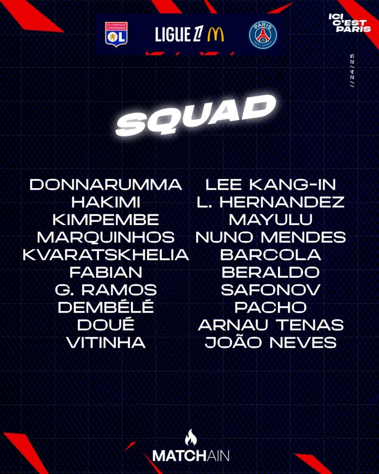 巴黎客戰(zhàn)里昂大名單:登貝萊、K77、阿什拉夫、內(nèi)維斯在列 2月23日訊 北京時間明天凌晨3點45分,巴黎將在法甲第23輪比賽中客場對陣?yán)锇?。巴黎公布了此役的球員名單,登貝萊、克瓦拉茨赫利亞、阿什拉夫、若昂-內(nèi)維斯在列。巴黎客戰(zhàn)里昂大名單門將:多納魯馬、薩福諾 2025/02/23