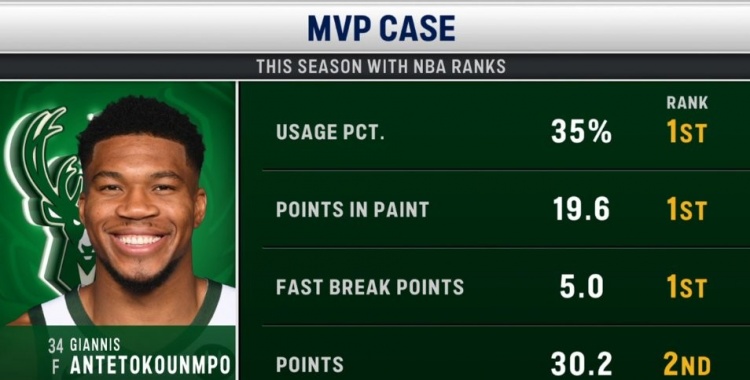 機(jī)會(huì)幾何?媒體列字母爭(zhēng)MVP的優(yōu)勢(shì):場(chǎng)均得分聯(lián)盟第2&禁區(qū)得分第1 3月23日訊 今天上午10點(diǎn),雄鹿將在客場(chǎng)挑戰(zhàn)國(guó)王。比賽開(kāi)始前,電視轉(zhuǎn)播商列舉了字母哥競(jìng)爭(zhēng)本賽季MVP的優(yōu)勢(shì),賽季至今,字母哥的使用率35%,聯(lián)盟第1,場(chǎng)均禁區(qū)得分19.6分,聯(lián)盟第1,場(chǎng)均快攻得分5 2025/03/23