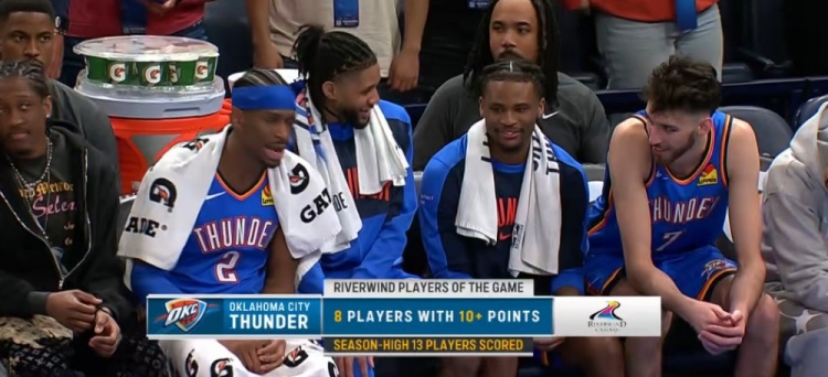 恐怖的深度!雷霆13人有得分入賬創(chuàng)賽季新高 其中8人得分上雙! 3月22日訊 今日NBA常規(guī)賽,雷霆141-106大勝黃蜂。本場比賽雷霆全員發(fā)揮,全隊共有13個人有得分入賬,創(chuàng)本賽季新高,其中更是有8人得分上雙! 2025/03/22