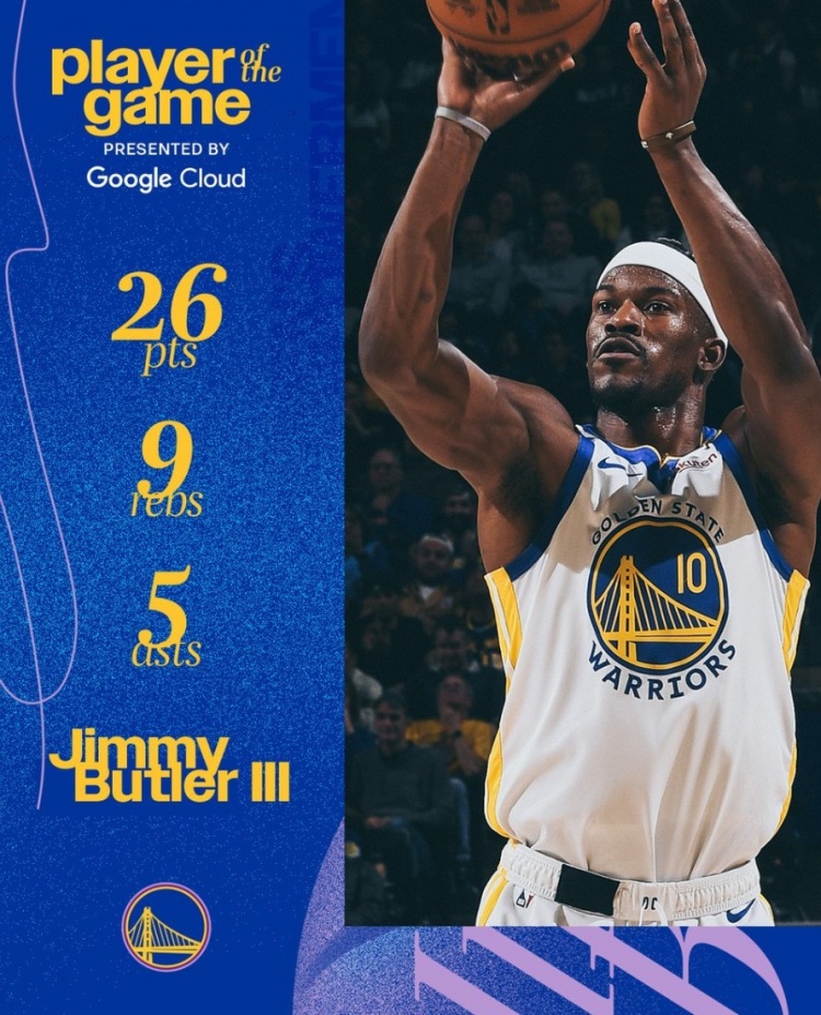代表勇士出戰(zhàn)11勝1負(fù)!巴特勒當(dāng)選本場勇士最佳球員 3月9日訊 NBA常規(guī)賽,勇士主場115-110擊敗活塞。此役,巴特勒出戰(zhàn)36分半鐘,17投9中(三分4中2)、罰球7中6,砍下26分9籃板5助攻。賽后,勇士官方選擇巴特勒為本場最佳球員。 2025/03/10