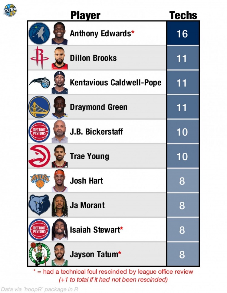 華子16次遭停賽!本賽季技犯榜:狄龍&追夢11次第二 活塞主帥10次 帶*:被撤銷過1次技犯的球員(若沒撤銷圖上數(shù)據(jù)還要加1次)相關(guān)新聞>>>?NBA官方:愛德華茲本賽季累計16次技術(shù)犯規(guī) 停薪禁賽一場 2025/03/01