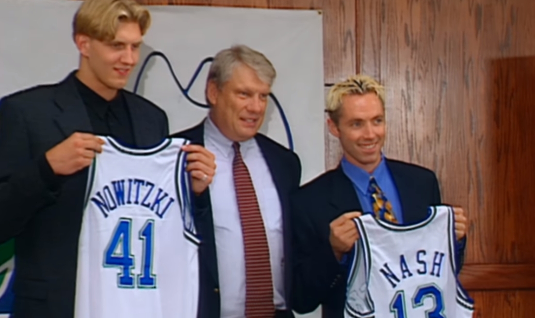 然而,事情并未如預期般發(fā)展。三個順位之后,獨行俠管理層真正心儀的新秀——德克-諾維茨基被雄鹿截胡,一位來自德國維爾茨堡、身高2.13米、投籃精準的20歲年輕人。當諾維茨基的名字被叫到時,溫哥華的通用汽車體育館內(nèi)響起了噓聲,這可能是因為諾維茨基當時還沒多少名氣,也可能是因為一些NBA球迷對歐洲球員抱有偏見,認為他們球風偏軟、速度緩慢。