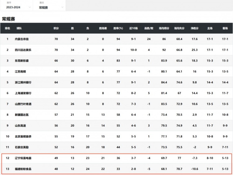 而且,在AB分組時,分組也沒有完全按照原來的排名對半分,而是搞出了12-9這樣的分組,于是上賽季排名第13的福建,就在準備不足的情況下直接壓線鎖定了季后賽。