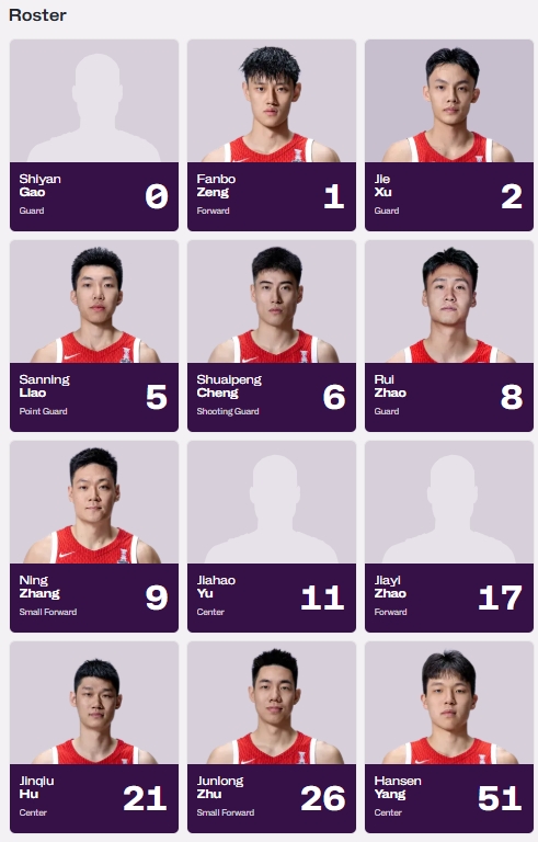 后衛(wèi):趙睿、高詩(shī)巖、徐杰、廖三寧、程帥澎;