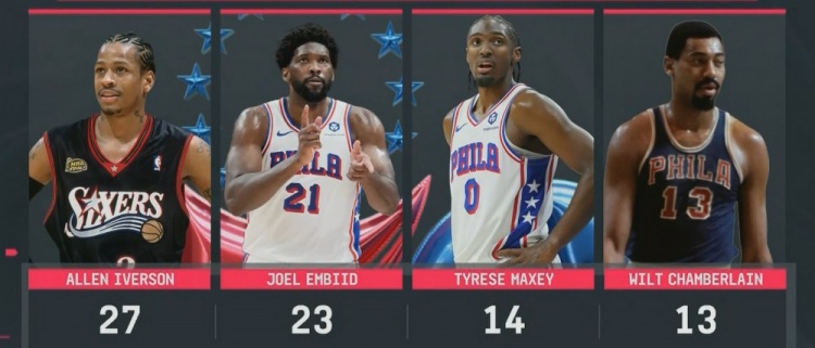 馬克西連續(xù)14場(chǎng)得25+ 超越張伯倫上升至76人隊(duì)史第三&僅次AI大帝