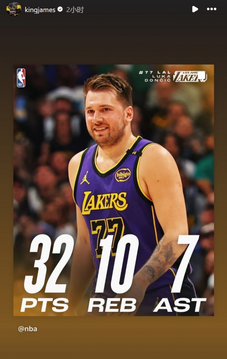賽后,詹姆斯在INS轉(zhuǎn)發(fā)了東契奇本場(chǎng)數(shù)據(jù),還有他們兩人的一次超遠(yuǎn)距離連線。
