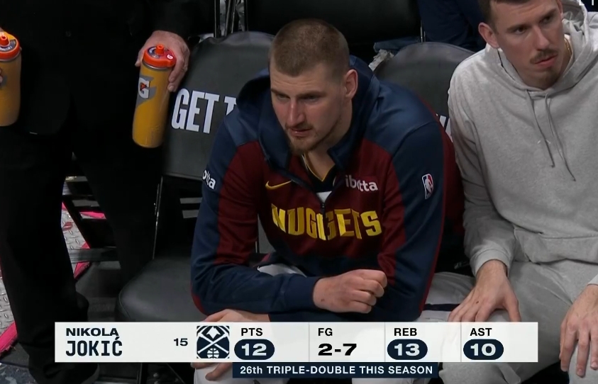 想不通嗎?落后湖人快30分 約基奇在場(chǎng)下發(fā)呆好久