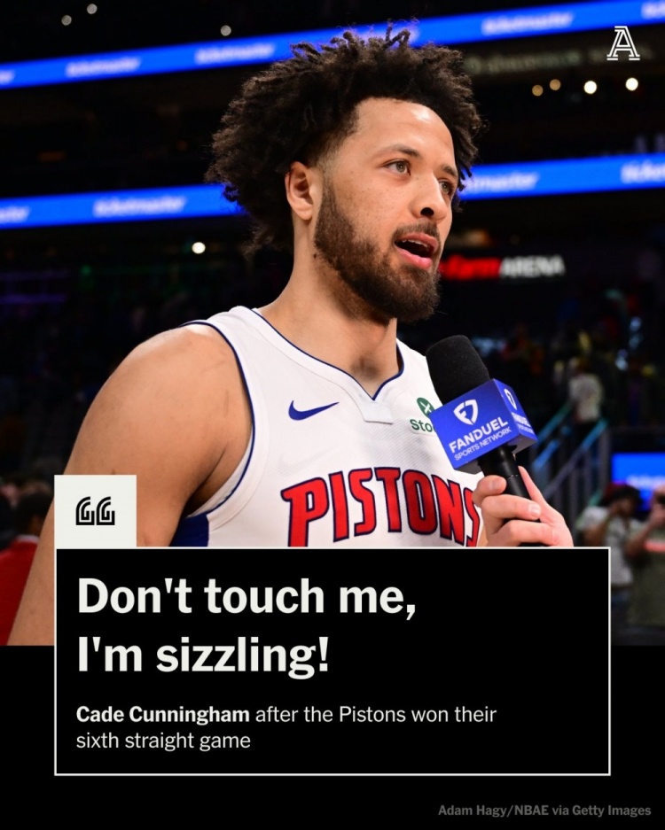 賽后活塞球星康寧漢姆接受了采訪,談到自己目前的狀態(tài),康寧漢姆說(shuō):“別碰我,我現(xiàn)在熱得發(fā)燙?!?/p>