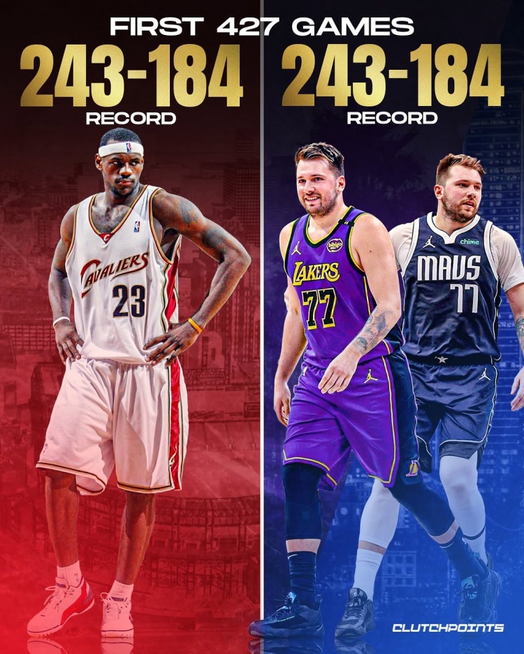 巧合還是命運?生涯前427戰(zhàn)詹姆斯和東契奇皆243勝184負(fù)