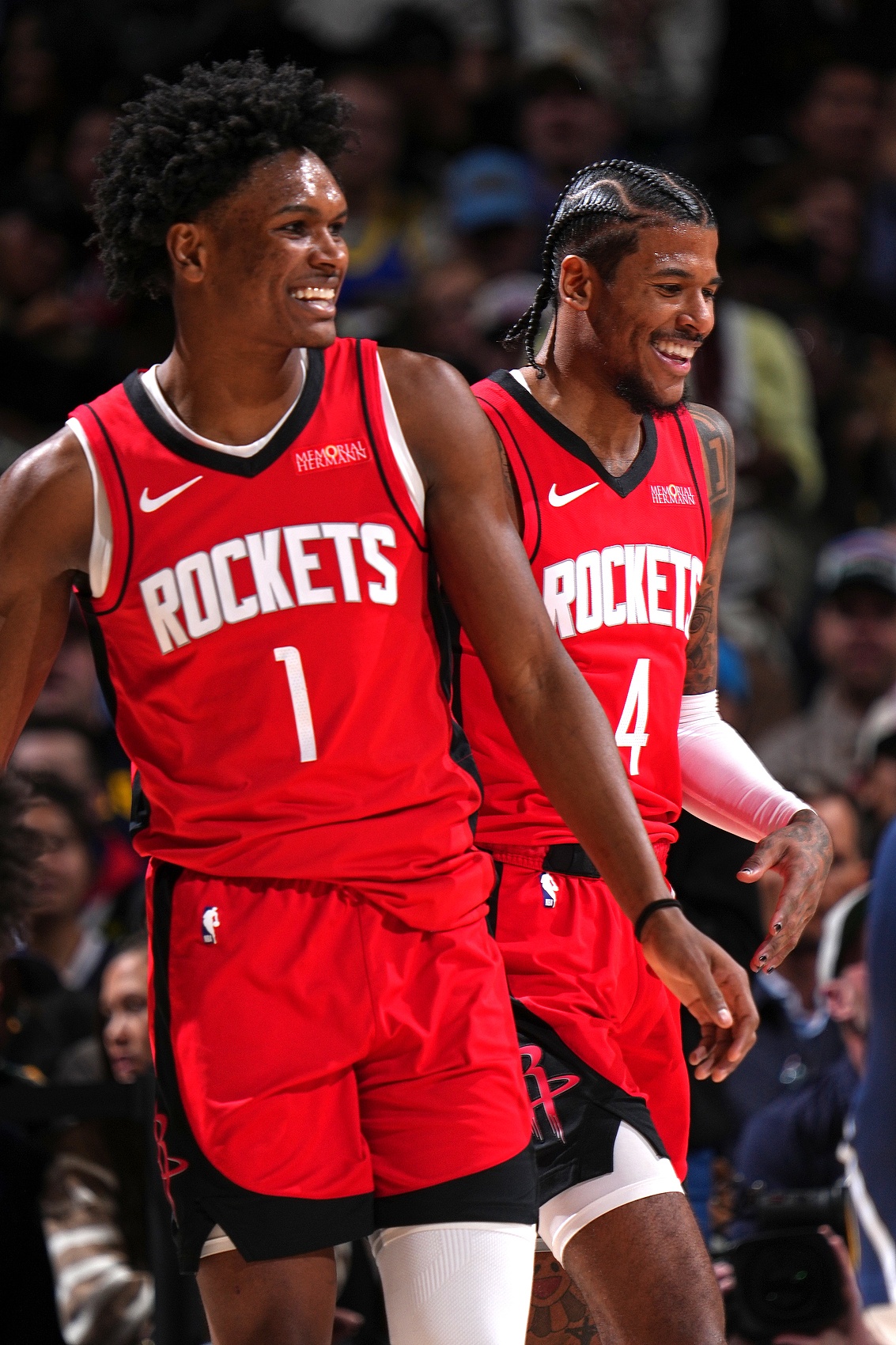 火箭球員杰倫-格林和阿門-湯普森三節(jié)各自拿到21分。