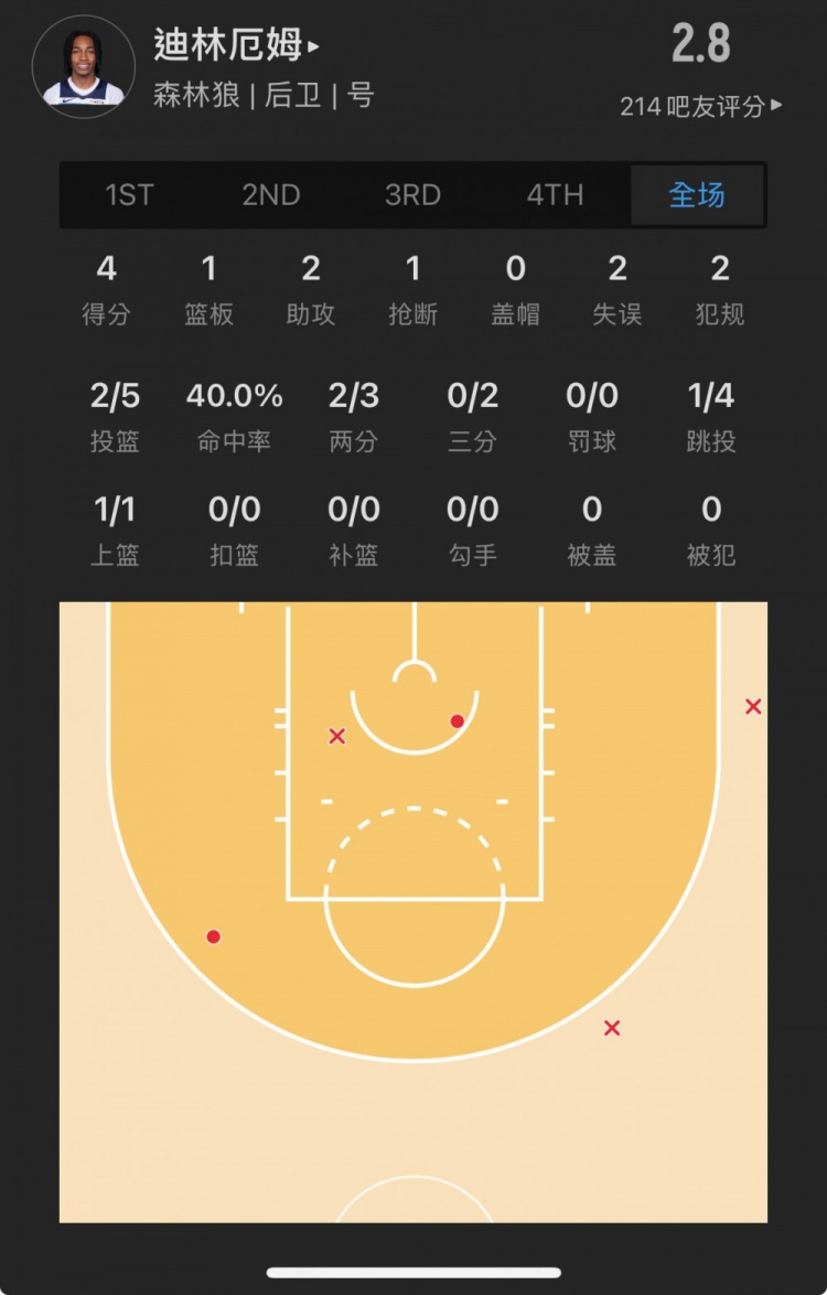 森林狼8號秀 羅布-迪林厄姆 登場11.6分鐘