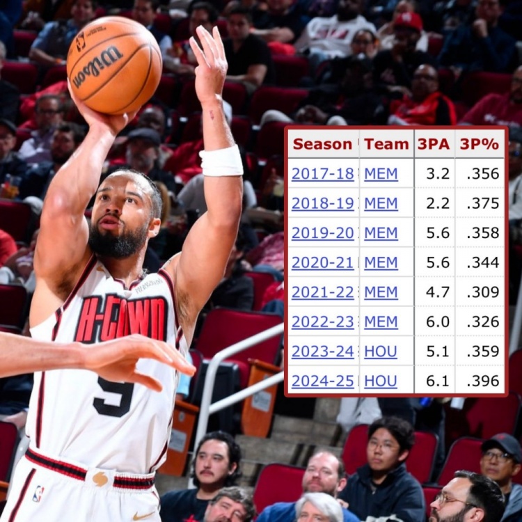 3月1日訊 據(jù)火箭記者Bradeaux統(tǒng)計,本賽季狄龍-布魯克斯的場均三分出手?jǐn)?shù)及三分命中率皆生涯新高。