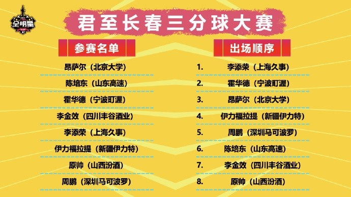 根據(jù)抽簽結(jié)果,技巧賽首輪偰李永煒VS徐杰,趙繼偉VS朱俊龍,原帥三分大賽壓軸出場,迪亞洛則是扣籃大賽最后一個(gè)出場。