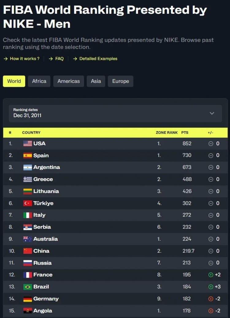相對而言,國際籃聯(lián)FIBA對于世界排名的計算就不太被關(guān)注了,不僅在于它的算法更為繁瑣和復(fù)雜,更在于一直以來都頗有幾分神秘色彩。