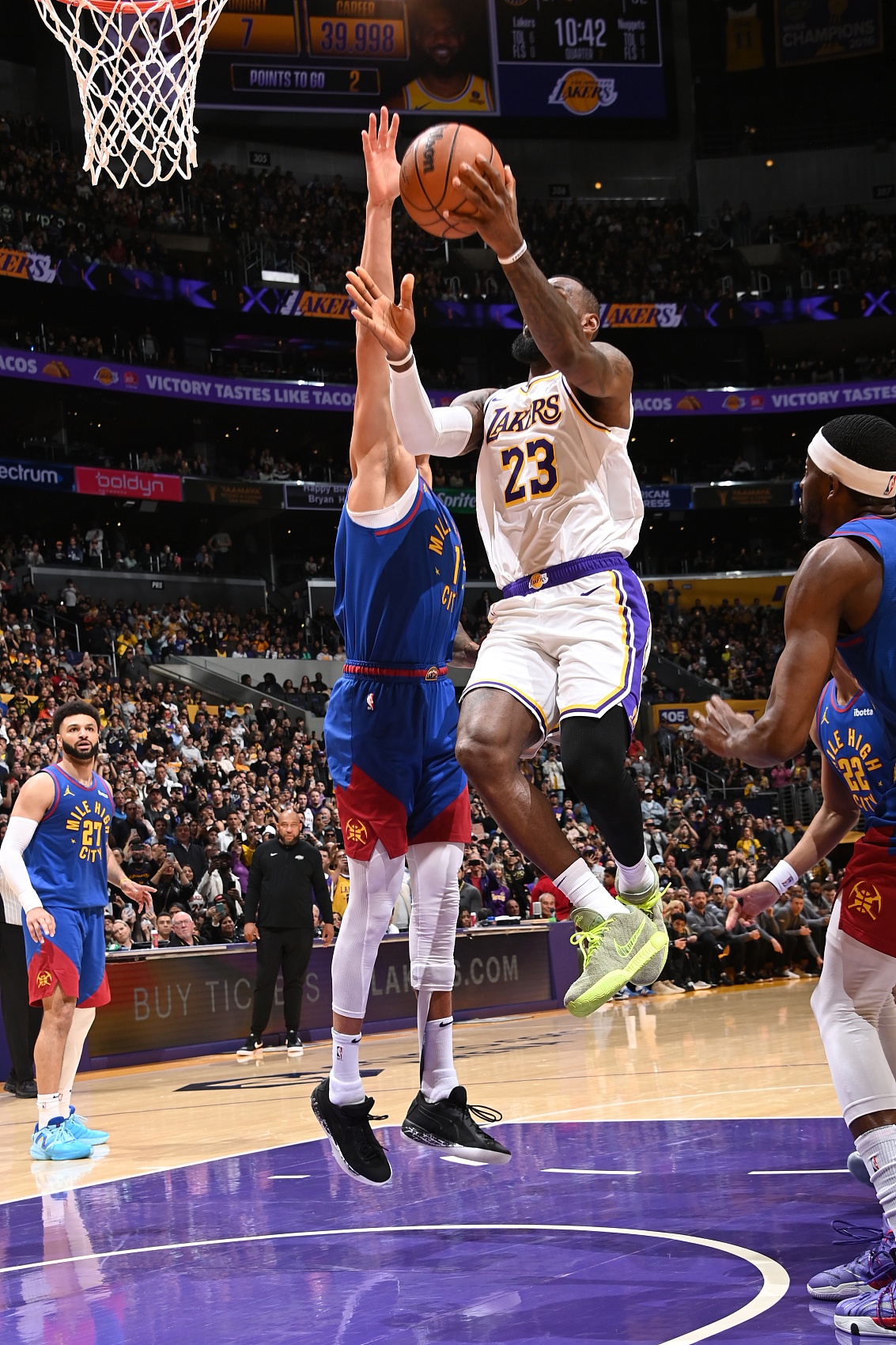 此役,湖人主場114-124不敵掘金,詹姆斯在第二節(jié)面對小邁克爾-波特上籃打進,完成了這歷史性的一刻。
