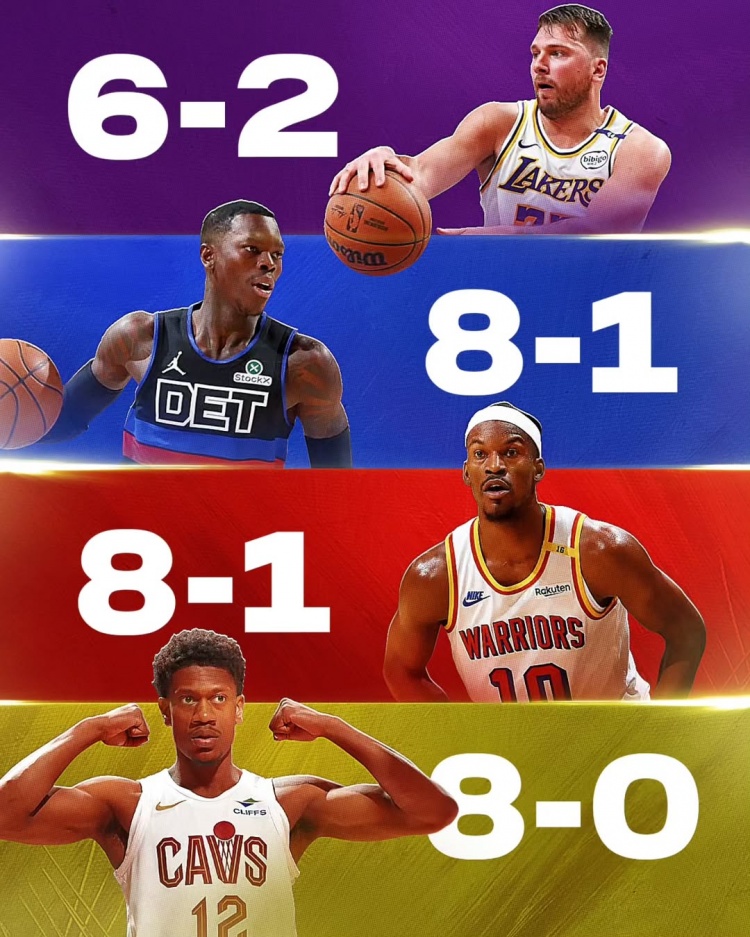 有東契奇的湖人6勝2負(fù),有施羅德的活塞8勝1負(fù)
