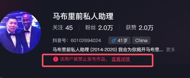 自稱馬布里前助理抖音賬號(hào)被禁言 昨天發(fā)布內(nèi)容希望老馬好好做人