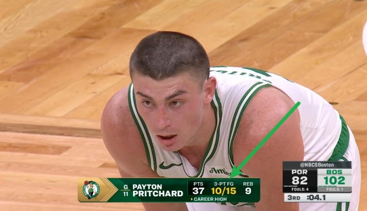普理查德今天迎來爆發(fā),前三節(jié)17投12中,三分15投10中,罰球3罰全中,已經(jīng)砍下37分,此外還有9籃板5助攻。其中10記三分是他生涯單場(chǎng)新高。