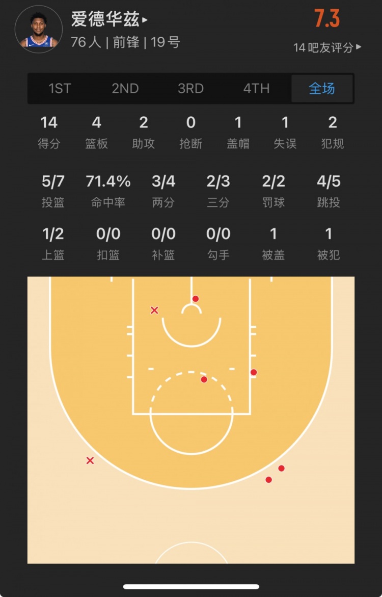 76人41號(hào)秀 阿德姆-博納 登場12.0分鐘