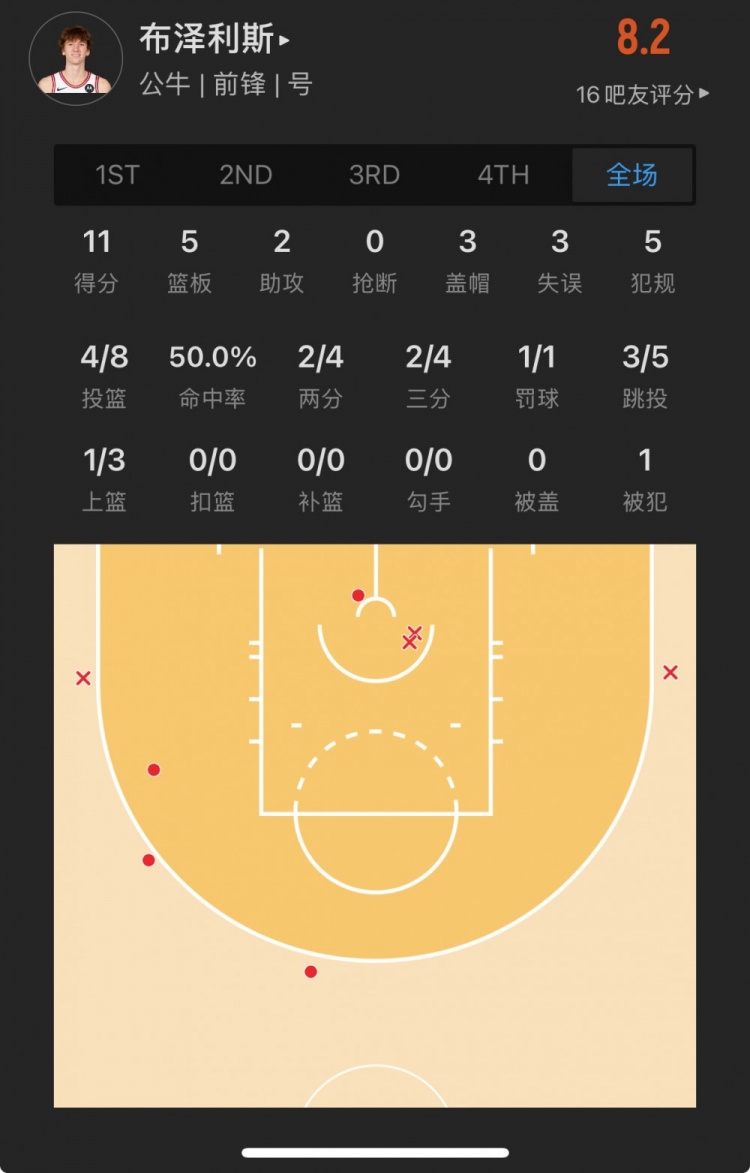 公牛11號(hào)秀 馬蒂斯-布澤利斯 登場29.3分鐘
