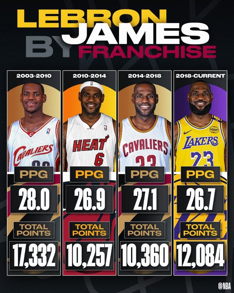 湖人詹:場(chǎng)均26.7分、總分12084分