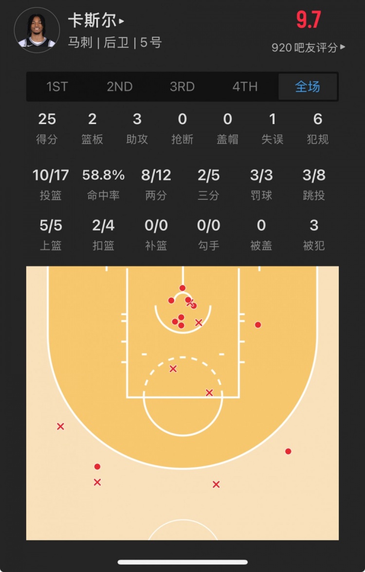 馬刺4號(hào)秀 斯蒂芬-卡斯?fàn)?登場(chǎng)26.4分鐘