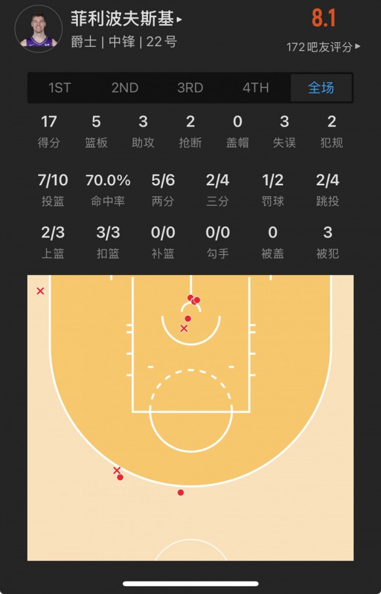 爵士32號(hào)秀 凱爾-菲利波夫斯基 登場(chǎng)27.3分鐘