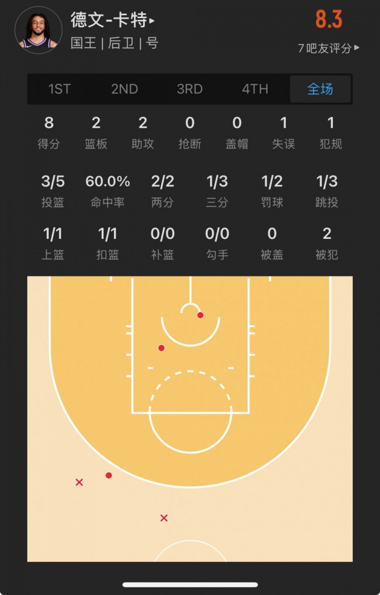 國(guó)王13號(hào)秀 德文-卡特 登場(chǎng)14.4分鐘