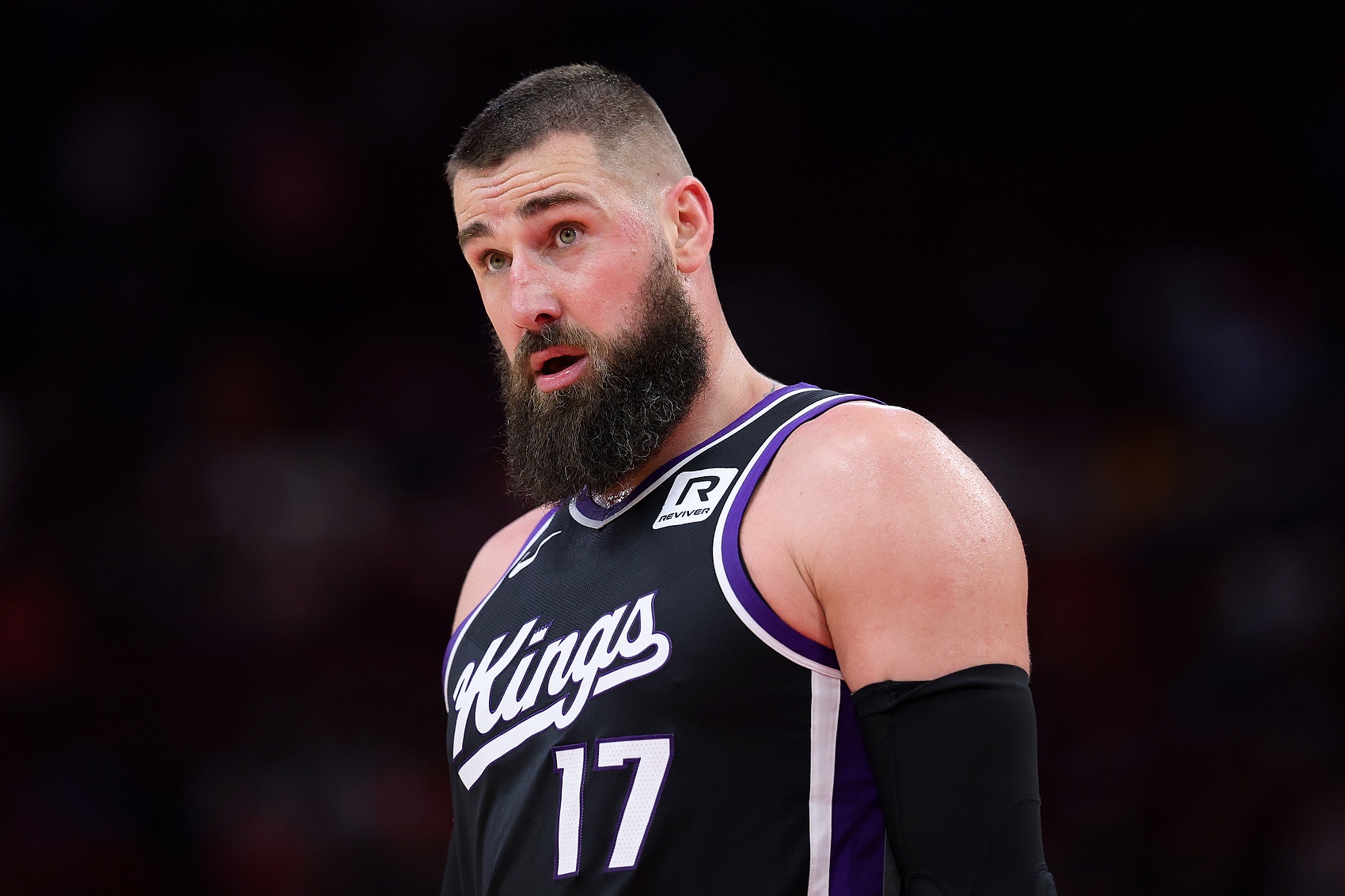 雖然小薩博尼斯缺陣,國(guó)王的打法換湯不換藥,把瓦蘭丘納斯當(dāng)窮人版小薩博尼斯用,這位立陶宛國(guó)手級(jí)中鋒雖然現(xiàn)今和祖巴茨相比又老又慢,但基本功扎實(shí)、體型寬大、掩護(hù)質(zhì)量好、有策應(yīng)球能力,他設(shè)立定位掩護(hù)手遞手策應(yīng)幫基根-穆雷和拉文無(wú)球走位擺脫接球,專打祖巴茨吃掩護(hù)。