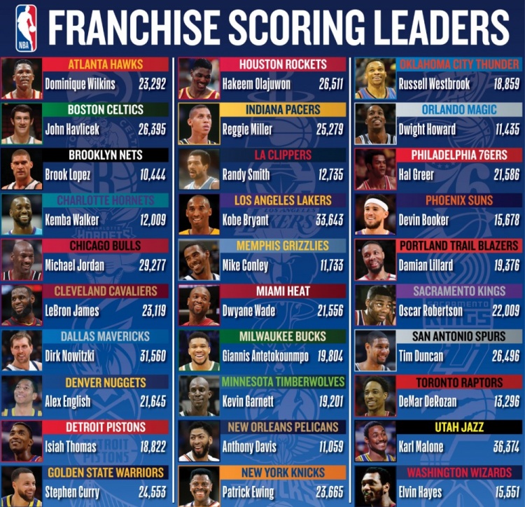 據(jù)統(tǒng)計(jì),布克保持著目前效力球隊(duì)的歷史總得分紀(jì)錄,比肩庫(kù)里和字母哥。