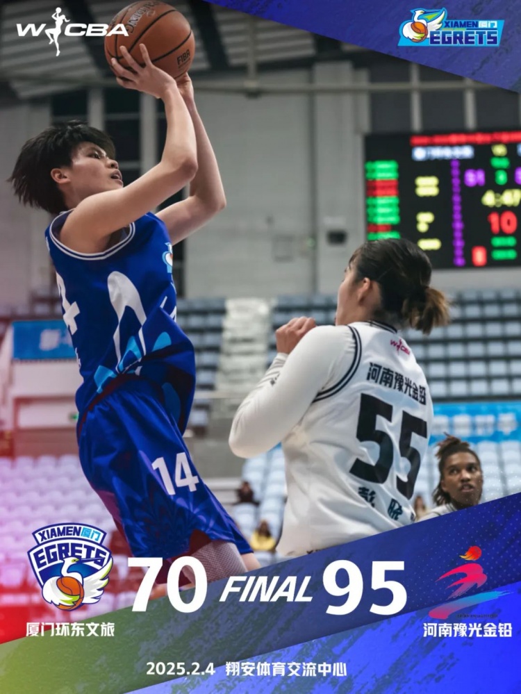 末節(jié)決戰(zhàn),黃柔甄接連突破內線取分,廈門女籃上來將分差縮小到4分打停河南。暫?;貋?,孫麗翻身中投幫助河南女籃緊急止血,加儂接連攻擊內線后陳薇安三分命中穩(wěn)住雙位數(shù)領先。隨后廈門女籃進攻斷電,7分多鐘僅得1分,河南女籃抓住機會拉開20分以上領先,最終廈門環(huán)東文旅70-95不敵河南豫光金鉛。
