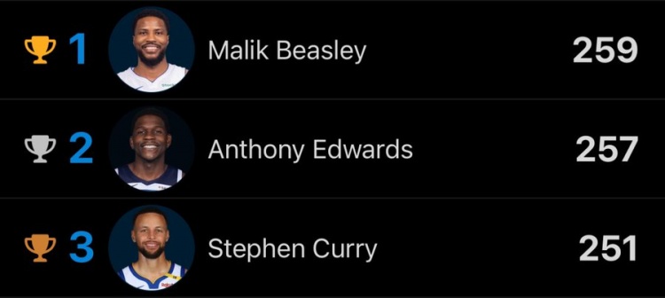 最終誰會第1?聯(lián)盟三分榜前3:比斯利259 華子257 庫里251