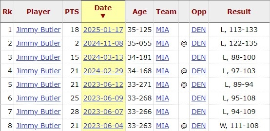 此役告負(fù)后,巴特勒個人對掘金是8連敗,上次贏球還是2023年總決賽G2。