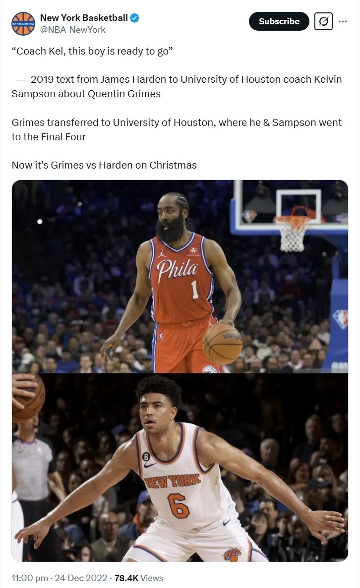 在休斯敦期間,格萊姆斯的擋拆防守和后場籃板能力大大提高了,這兩項(xiàng)后來成為了他在NBA的立足之本。2021年選秀大會(huì),他在首輪第25順位被尼克斯摘走——對于曾經(jīng)被看好拿下前五順位的天才來說,這個(gè)結(jié)果多少有些讓人失望,但格萊姆斯心態(tài)很好,這得益于他在學(xué)生時(shí)代一直養(yǎng)成的性格,格萊姆斯堅(jiān)信,就算兩年前他以高順位進(jìn)入NBA,該學(xué)的東西還是要從頭學(xué)起,從一個(gè)較低的起點(diǎn)出發(fā)不一定是壞事。