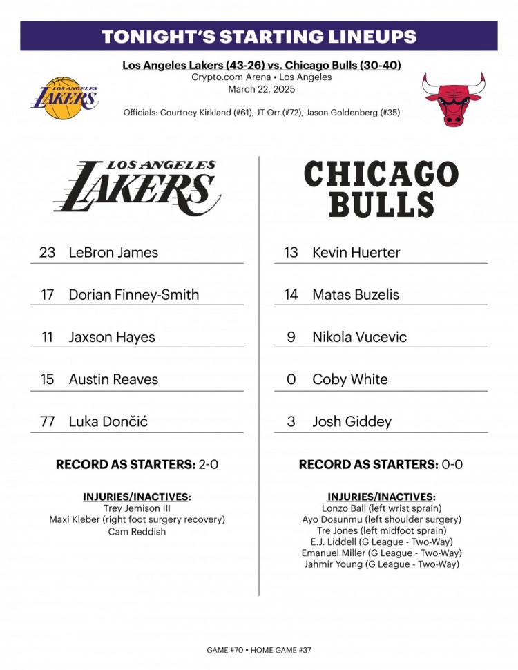 3月23日訊 上午10點半,湖人主場迎戰(zhàn)公牛。