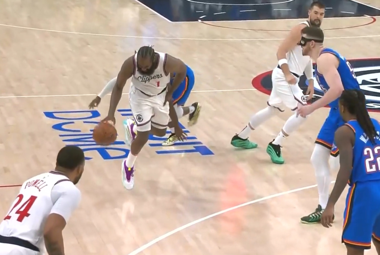 被多特貼身頂翻!哈登捂著自己的大腿痛苦倒地!好在無(wú)礙繼續(xù)比賽