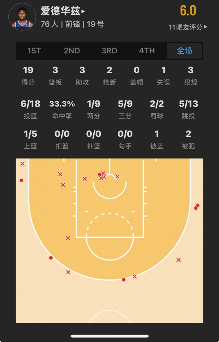 76人41號(hào)秀 阿德姆-博納 登場(chǎng)19.2分鐘