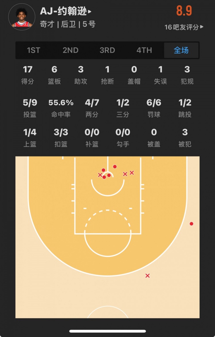 奇才23號(hào)秀 AJ-約翰遜 登場(chǎng)28.4分鐘