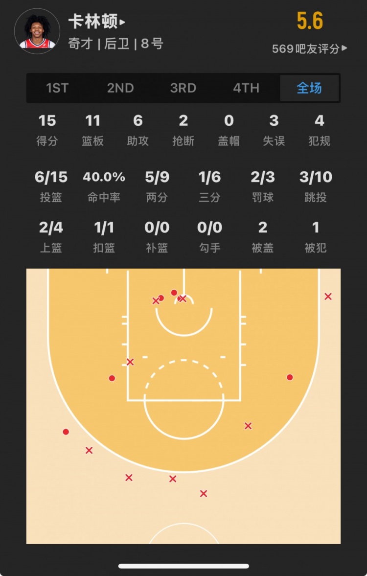 奇才14號(hào)秀 卡爾頓-卡林頓 登場(chǎng)30.9分鐘
