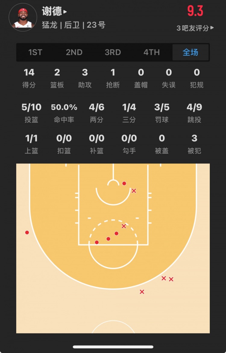 猛龍45號(hào)秀 賈馬爾-謝德 登場(chǎng)19.9分鐘