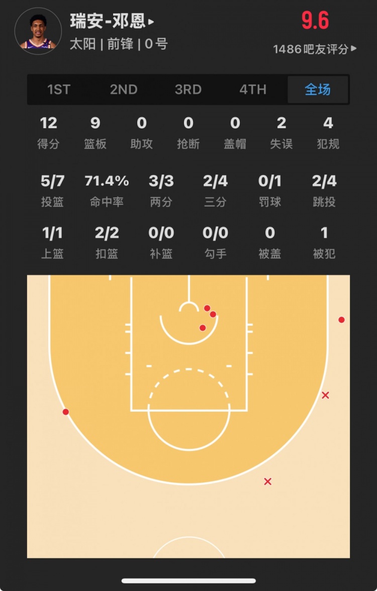 太陽(yáng)28號(hào)秀 瑞安-鄧恩 登場(chǎng)29.6分鐘