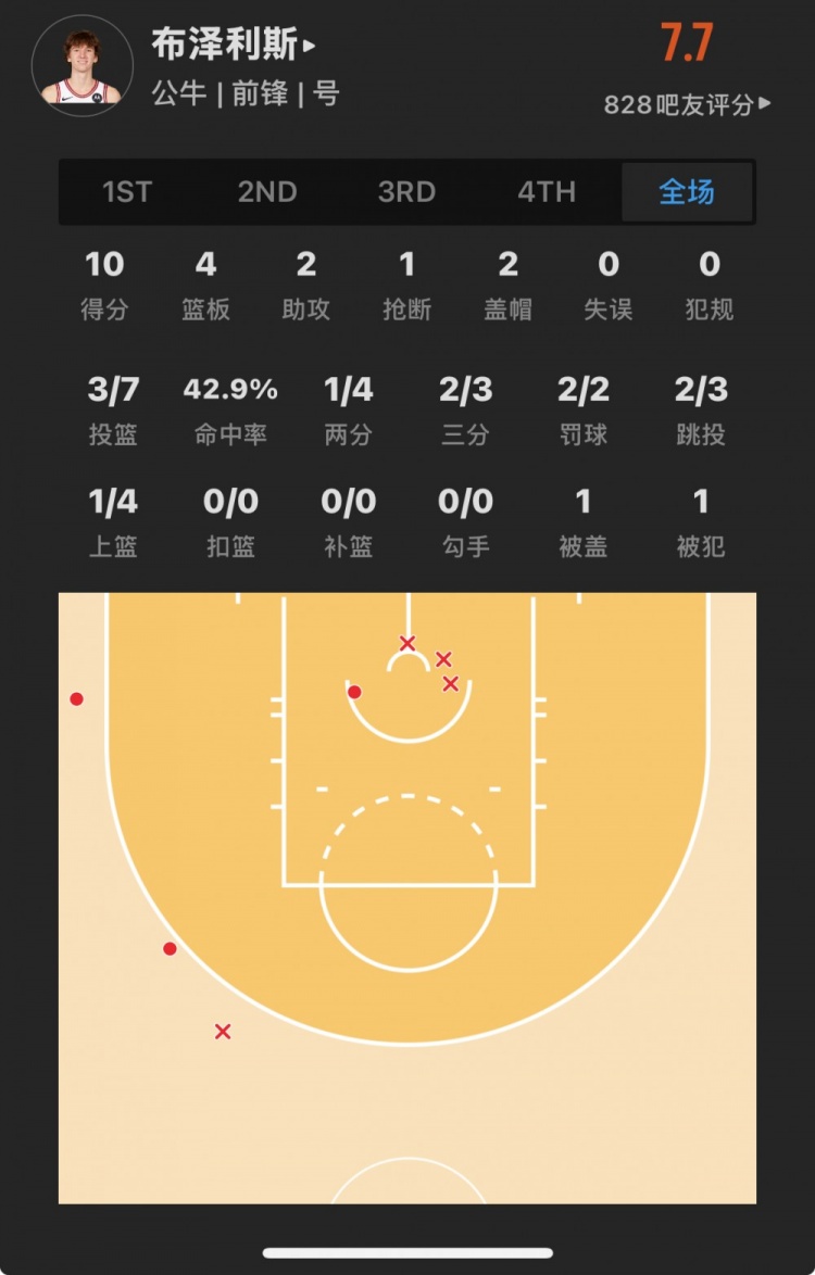 公牛11號(hào)秀 馬蒂斯-布澤利斯 登場(chǎng)24.0分鐘