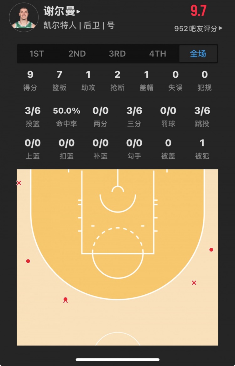 凱爾特人30號(hào)秀 貝勒-謝爾曼 登場(chǎng)28.2分鐘