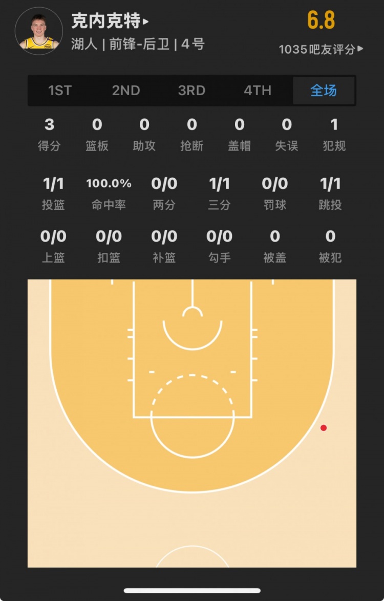湖人17號(hào)秀 道爾頓-克內(nèi)克特 登場(chǎng)4.6分鐘