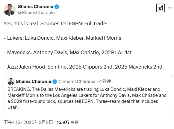 這是真的!Shams再次確認(rèn)湖人和獨(dú)行俠交易 并補(bǔ)充了細(xì)節(jié)